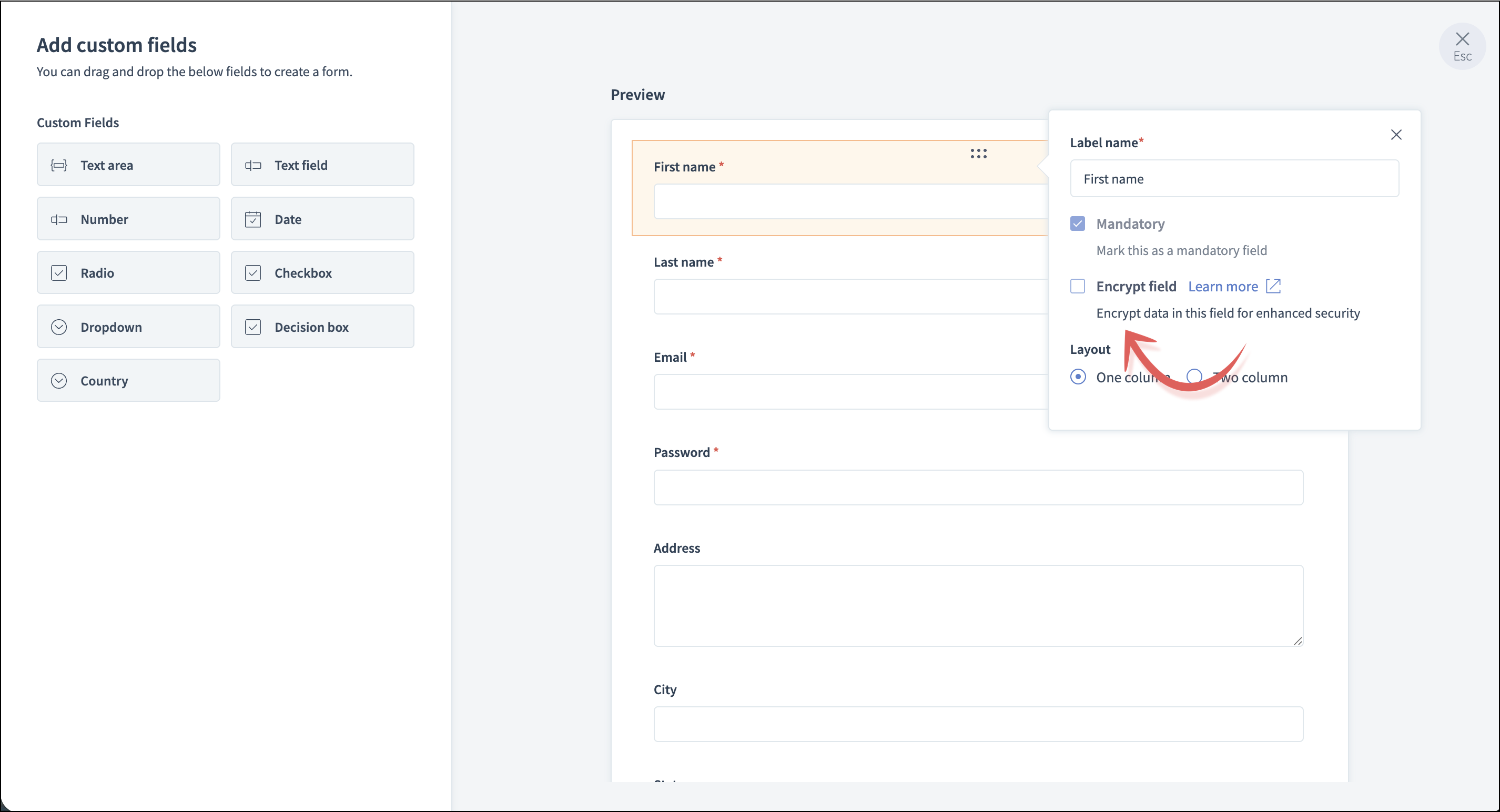 Encryption adds an extra layer of security to protect data from potential leaks or unauthorized access. You can now enable field-level encryption for forms used to collect learner information. This ensures that learners' sensitive information, such as first name, last name, email address, phone number, and more is securely protected and accessible only to trainers.