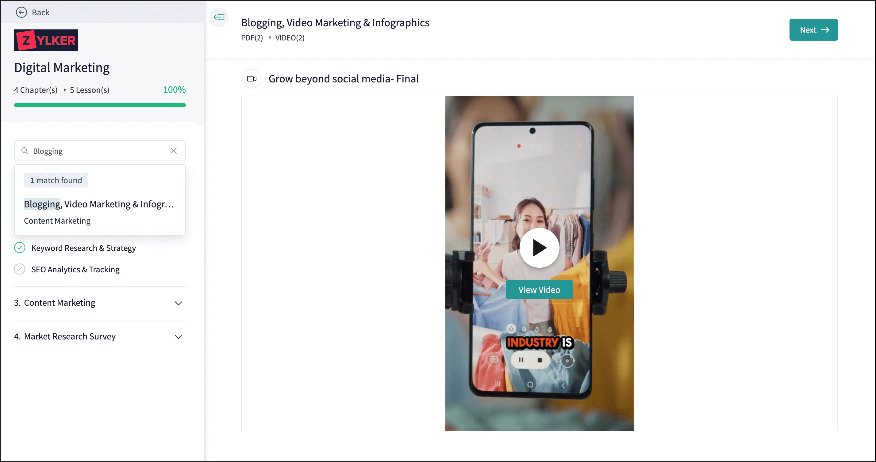 Learners can use the search functionality to locate lessons in the course viewer, making navigation faster and easier.