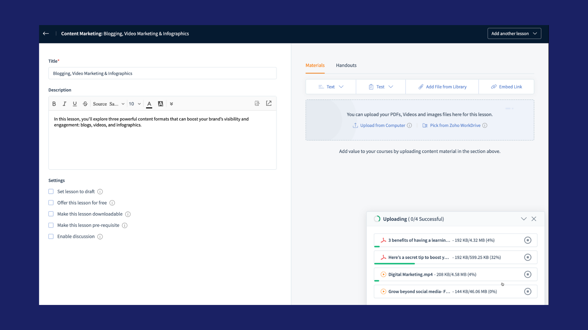 It’s time to say goodbye to uploading course materials one by one. Now, you can upload everything at once, saving you time and effort.