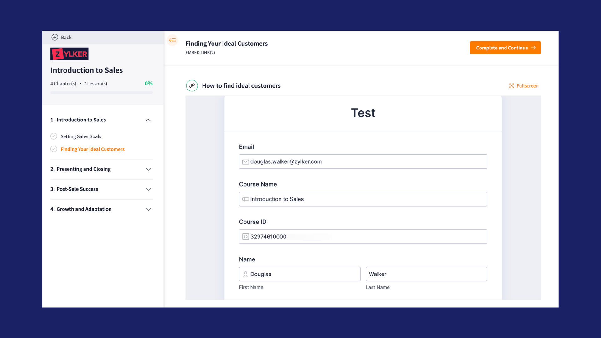 You can deliver a personalized experience to learners by pre-filling details such as name, email, course ID, and course name in embedded forms. This can be done by appending parameters to the embed link or iframe URL.