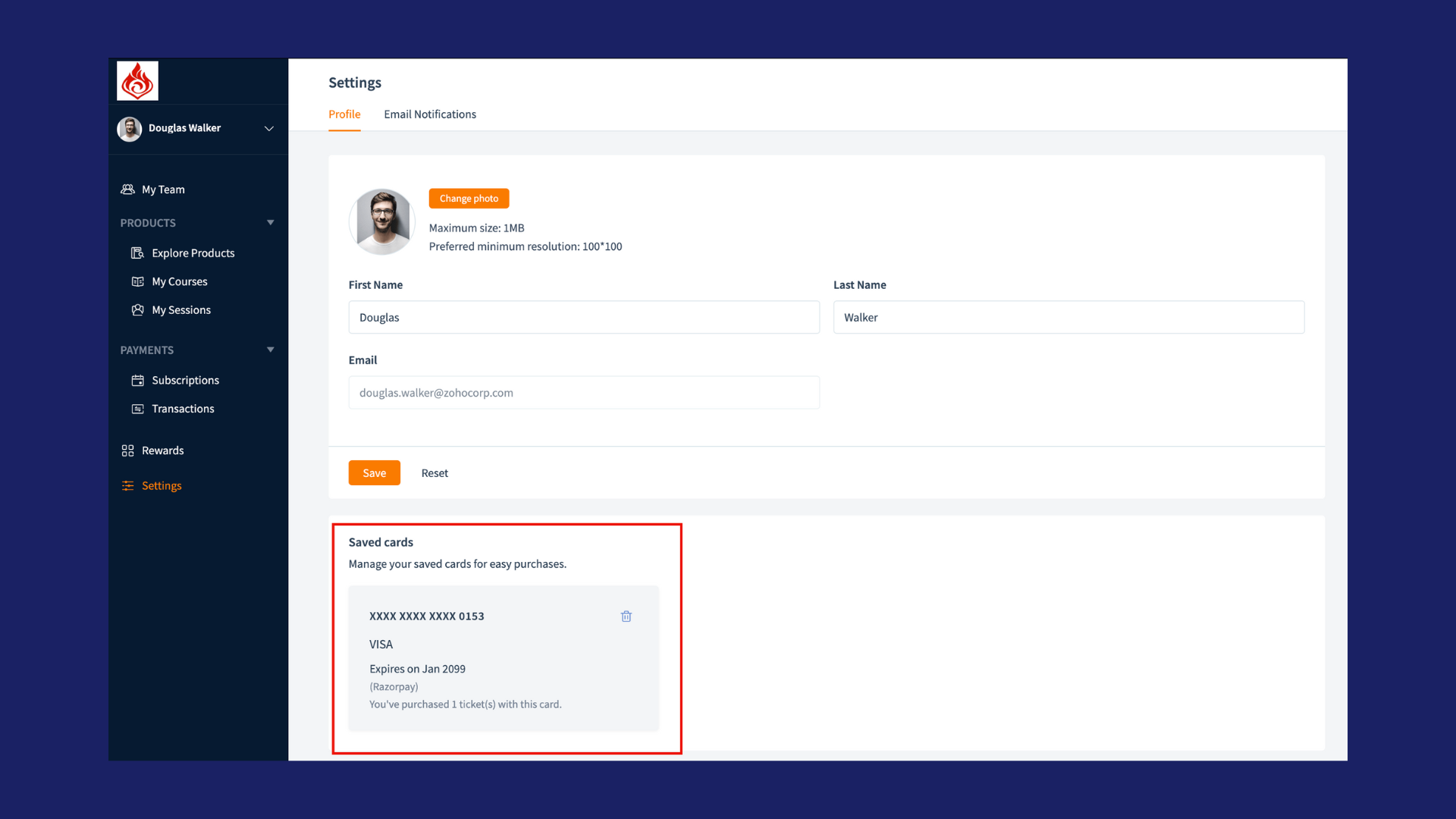 Your learners can now view their saved card details for a smoother payment experience, eliminating the need to re-enter card information for every transaction.