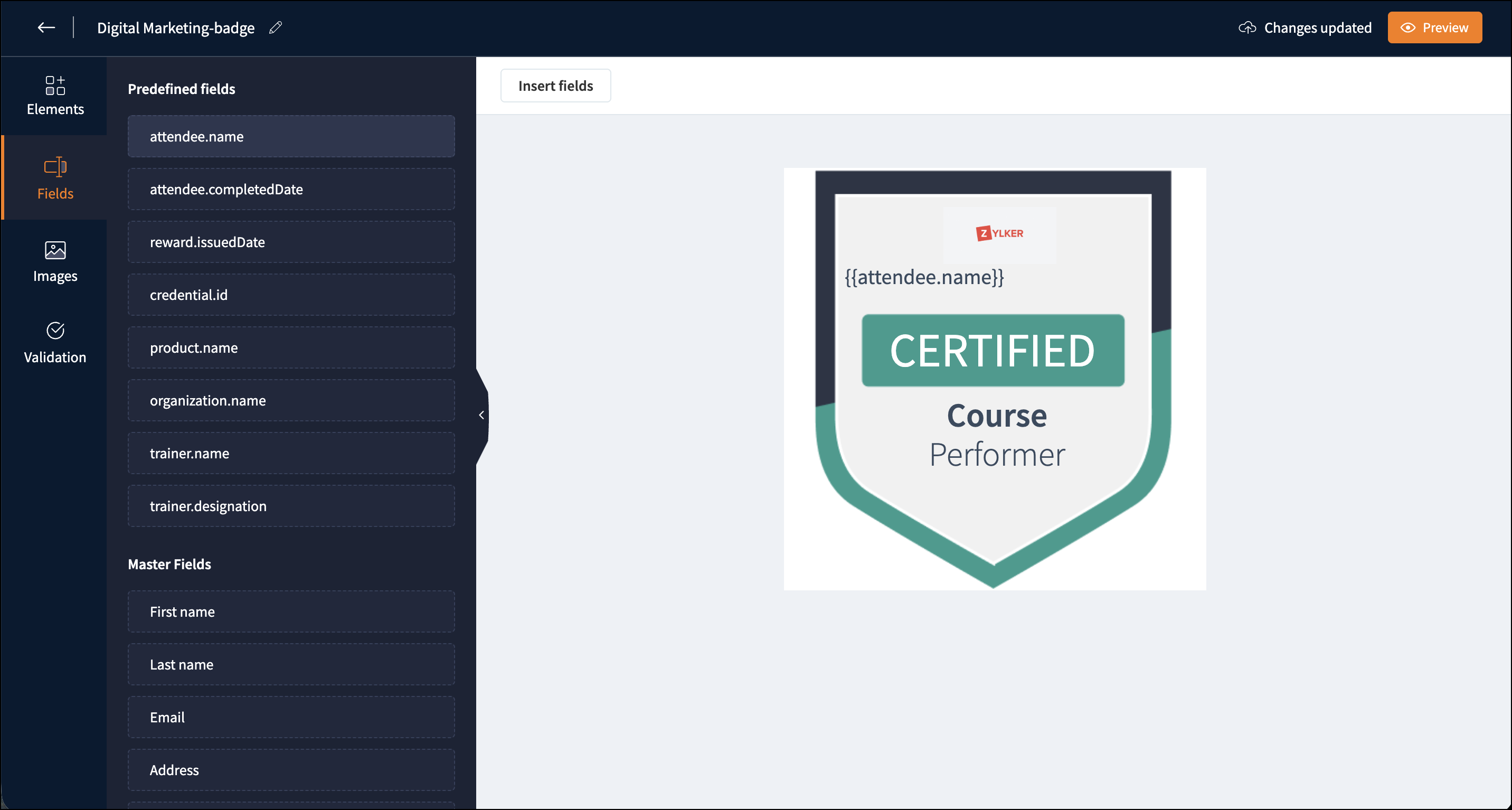 We’ve upgraded our certificate editor with new functionality. The certificate editor comprises five components: Elements, Fields, Images, Background, and Validation, providing effective and efficient customization options. This carefully designed certificate editor offers easy customization and visually appealing certificate.