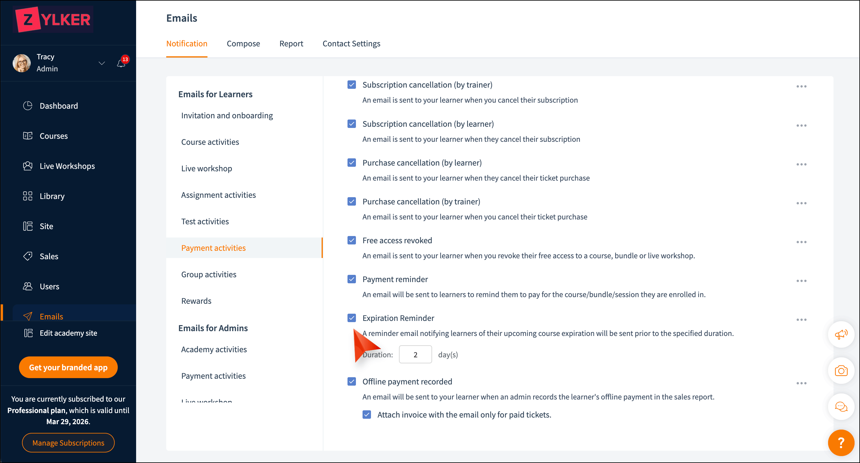 Please note that learners will still receive important emails related to their account, payments, and training.