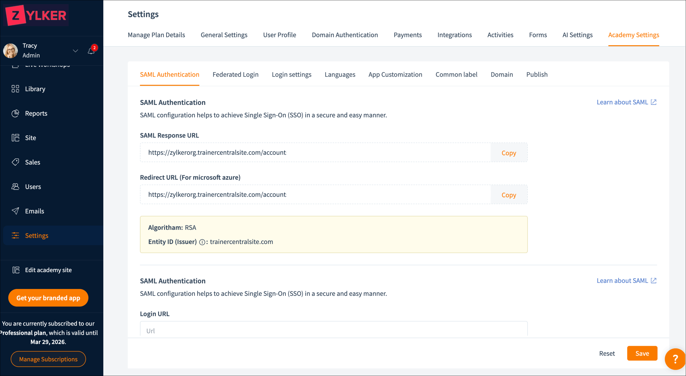 Security Assertion Markup Language (SAML) based single sign-on allows learners to access multiple systems with a single login. This is especially useful for trainers who run training institutes or organizations, as their learners often need to log in multiple times before accessing their training. Once enabled, learners can access both their organization’s portal and the academy using a single set of credentials. This streamlines navigation and makes the learning experience more convenient.