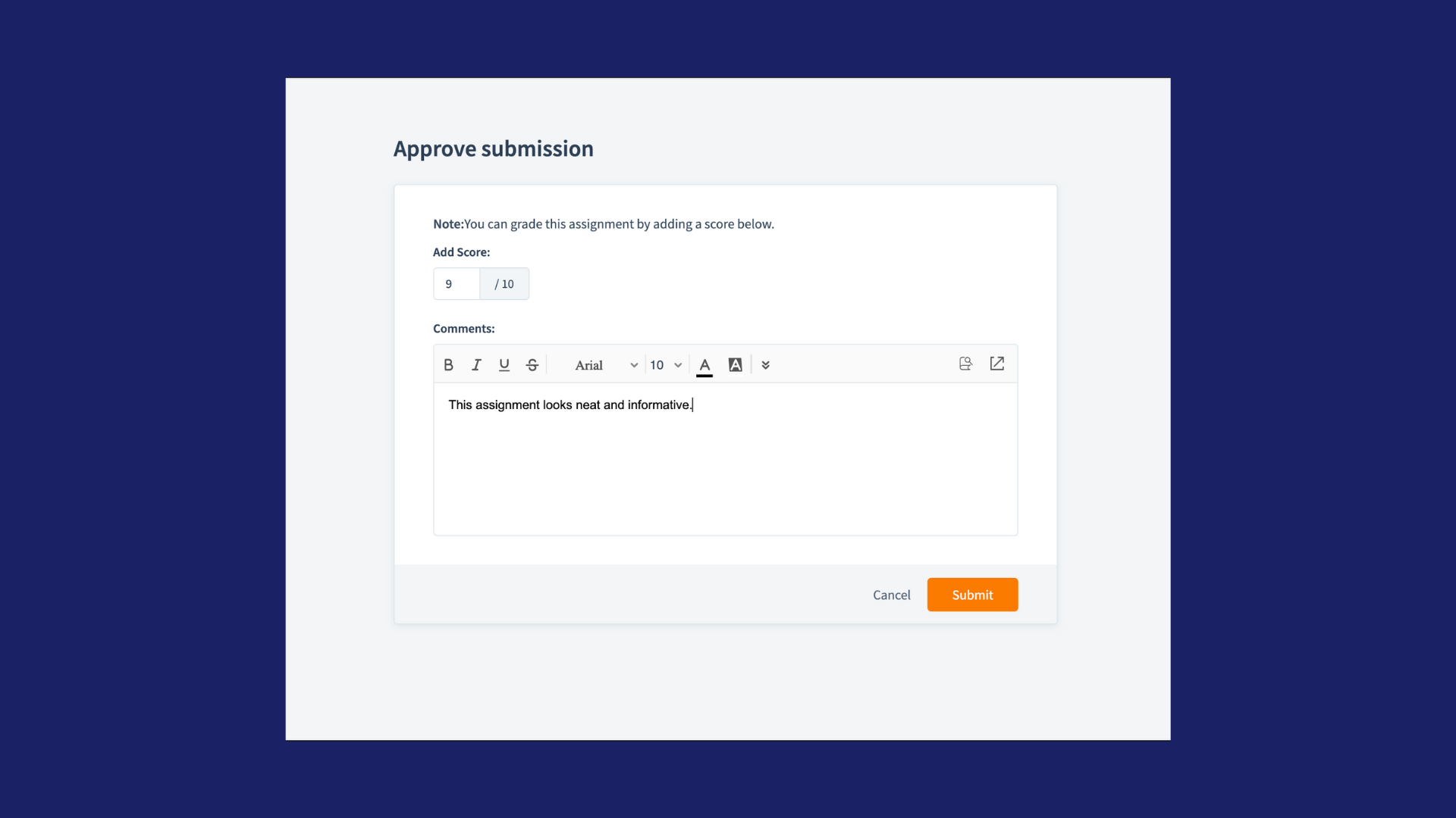 From now on, your assignment comments can be highlighted with colors. Yes, we have incorporated a rich text editor in the assignment comments section, which will allow you to format your content, insert images, and enjoy an enriched user experience.